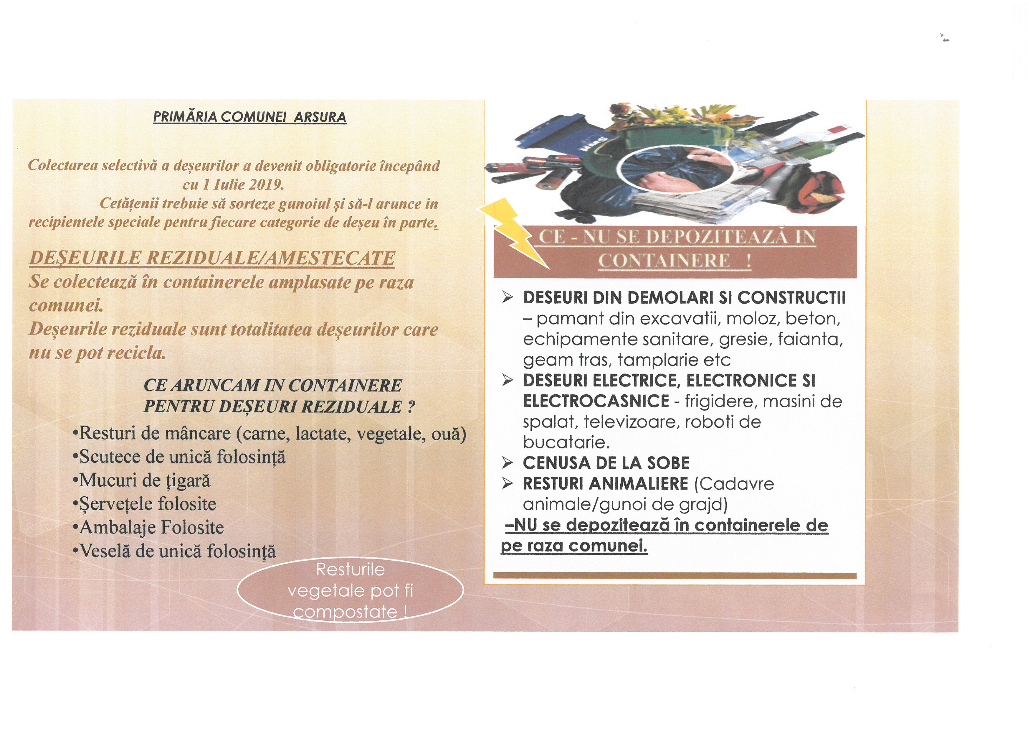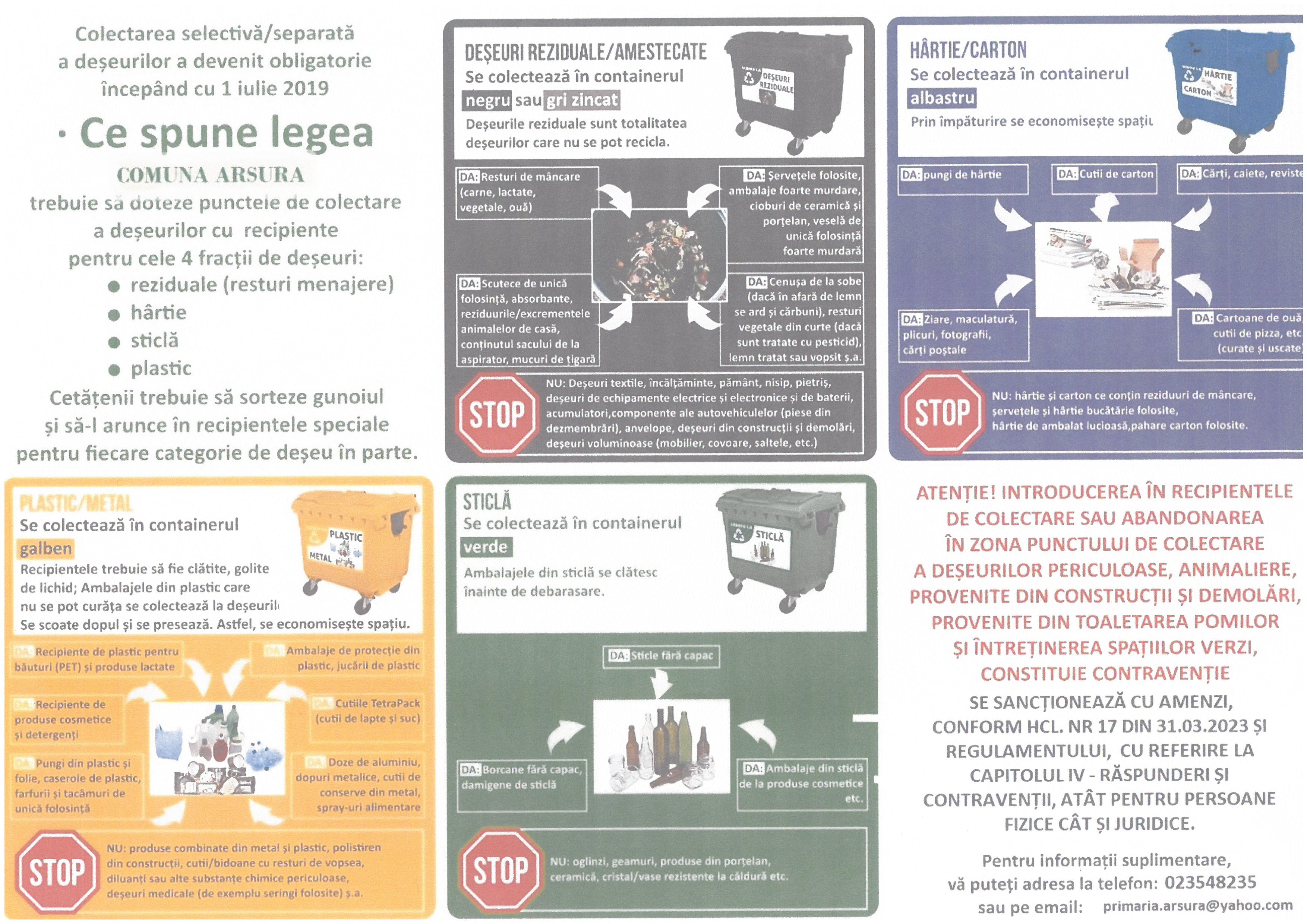 8 Plansă de informare a populației cu privire la depunerea în containerele specifice